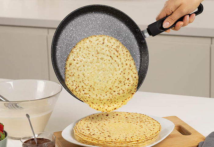 - Crêpepfanne mit einem Durchmesser von 25 cm aus langlebigem geschmiedetem Aluminium.