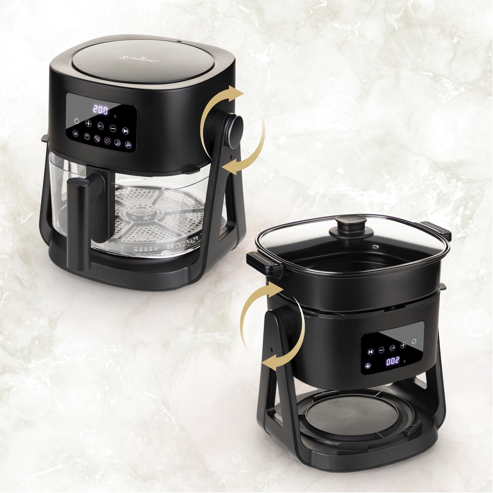 - All-in-One-Gerät: Heißluftfritteuse, Grill und Kocher.