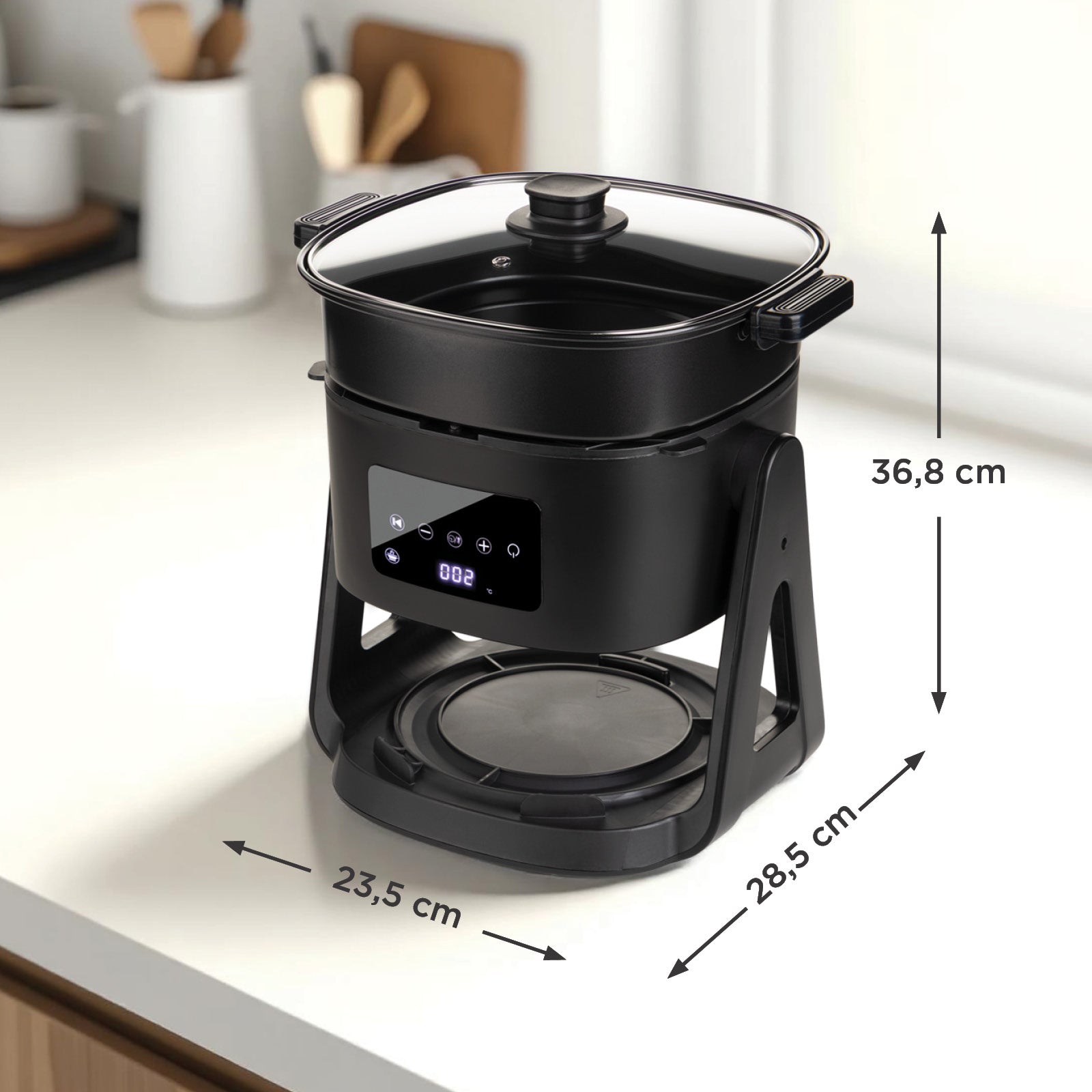 - Innovative schwenkbare Heizeinheit für schnelles und einfaches Wechseln der Kochmodi.