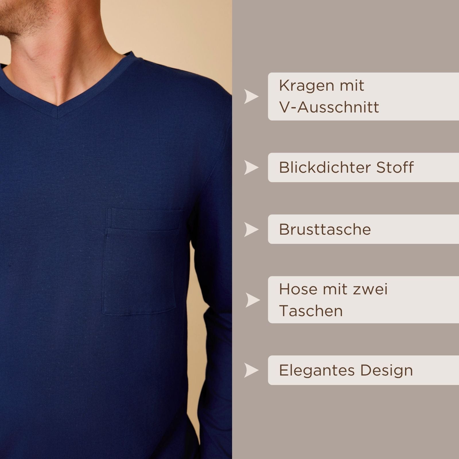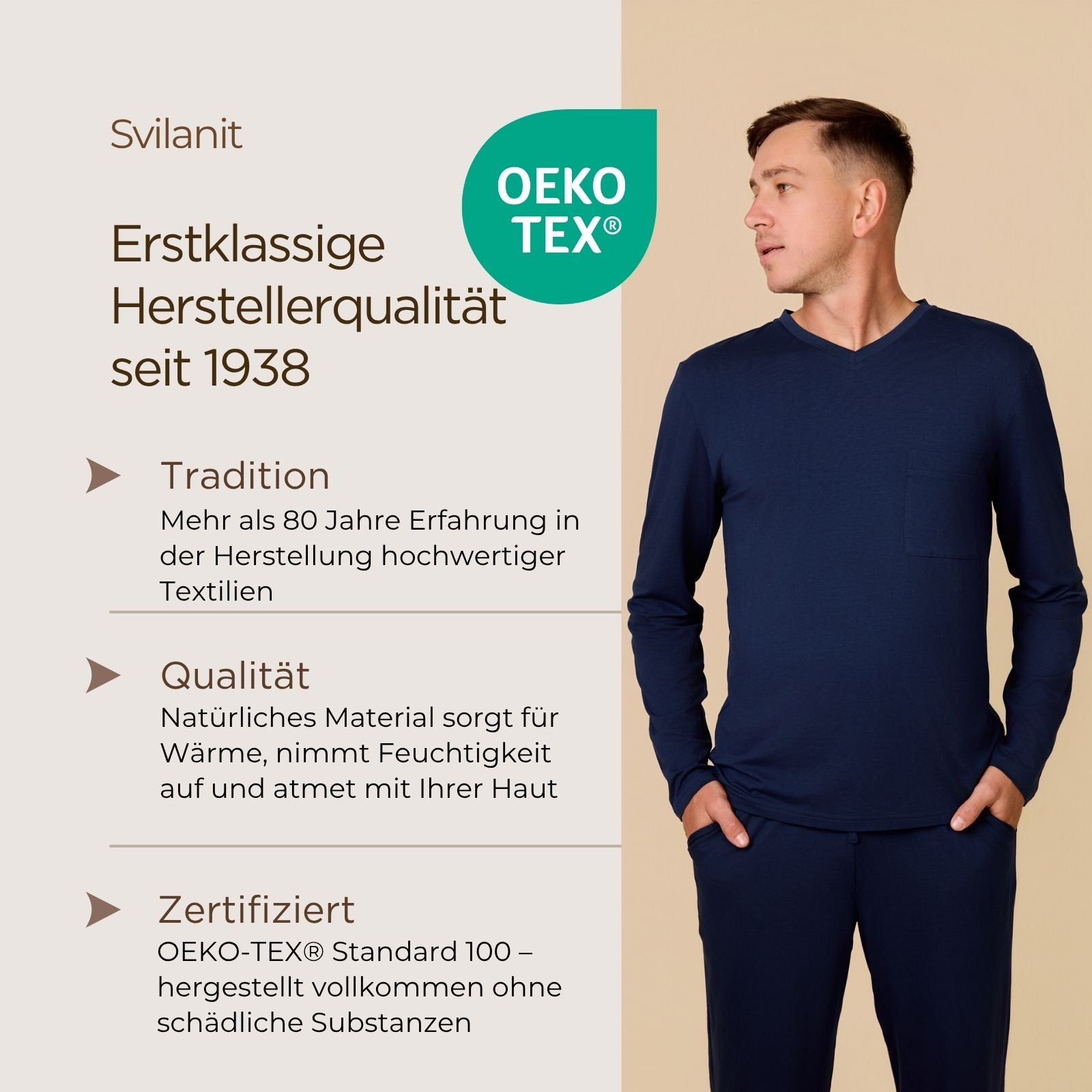 Svilanit langer Pyjama für Herren Lennox V – Imperial Blue