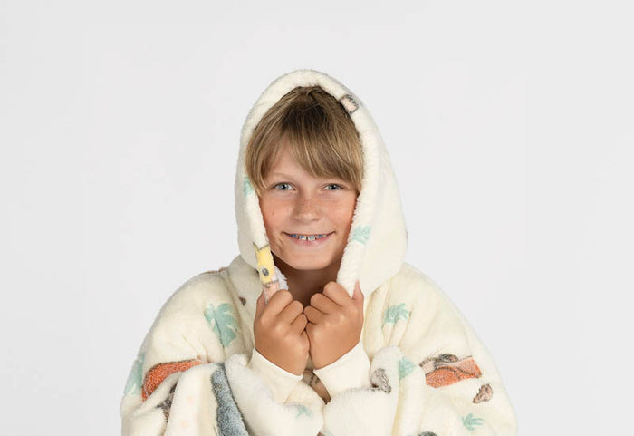 - Die beliebte Kapuzendecke mit Ärmeln, damit Ihre Kinder es warm und gemütlich haben.