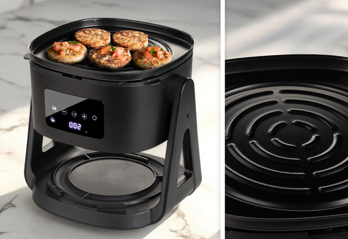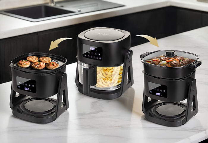 - All-in-One-Gerät: Heißluftfritteuse, Grill und Kocher.