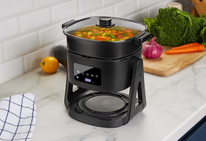 - Innovative schwenkbare Heizeinheit für schnelles und einfaches Wechseln der Kochmodi.