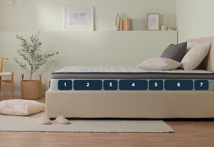 Hochwertige Federn und 7 Zonen für komfortablen Schlaf in jeder Position.