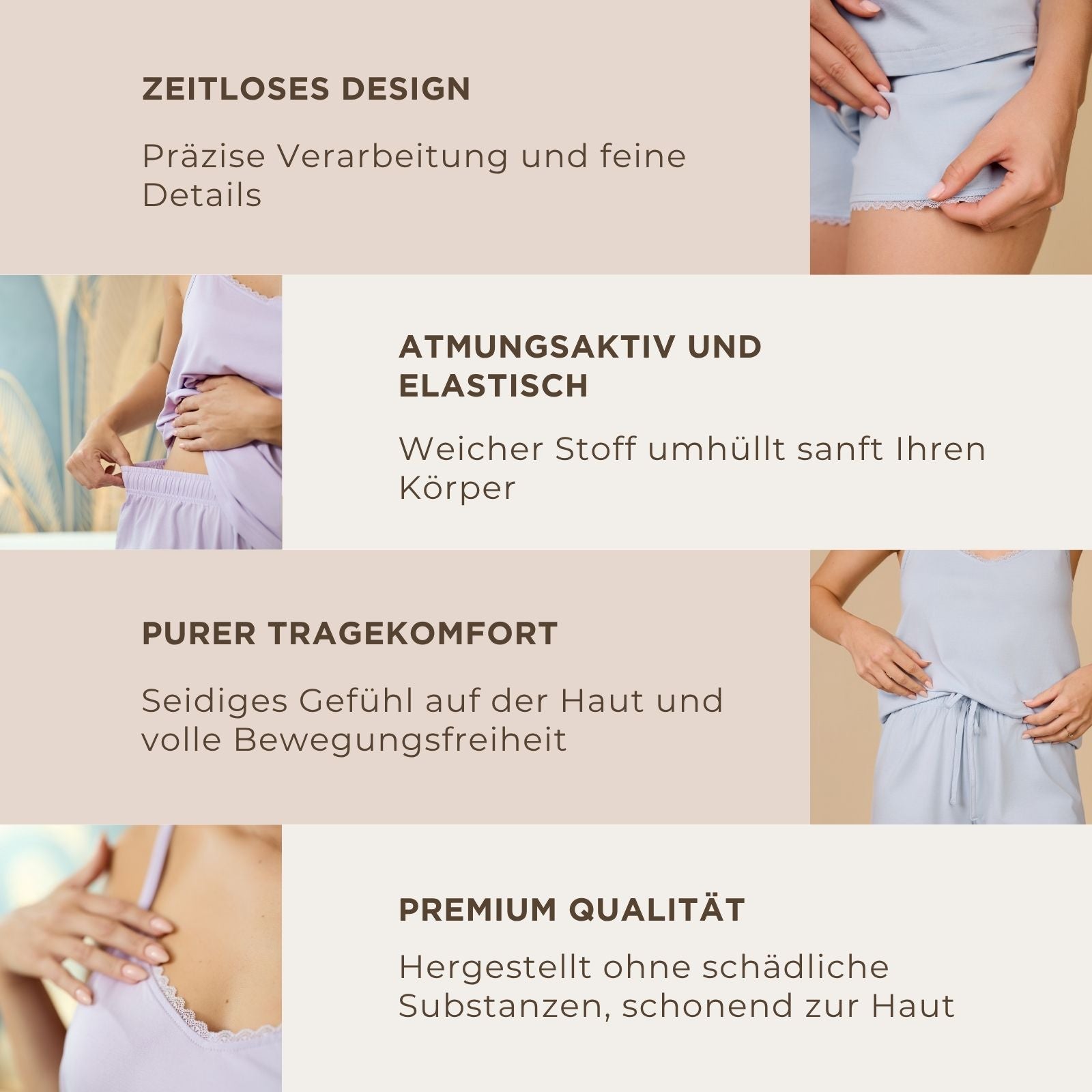 - Bequeme kurze Pyjamahose mit feiner Spitze, elastischem Bund und Kordelzug