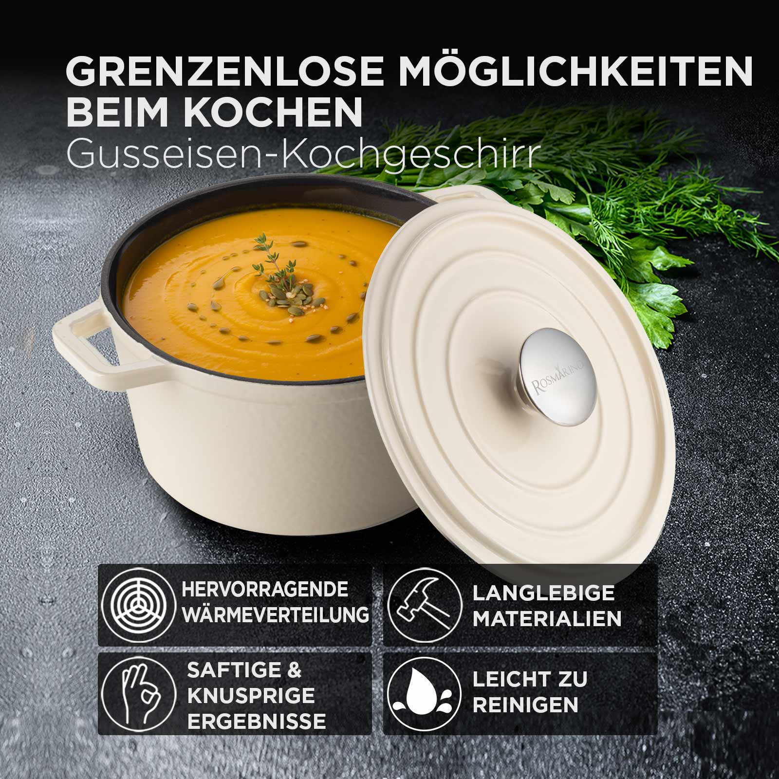 - Vielseitig einsetzbar: von Eintöpfen, Gulasch, Fleisch bis Brot.