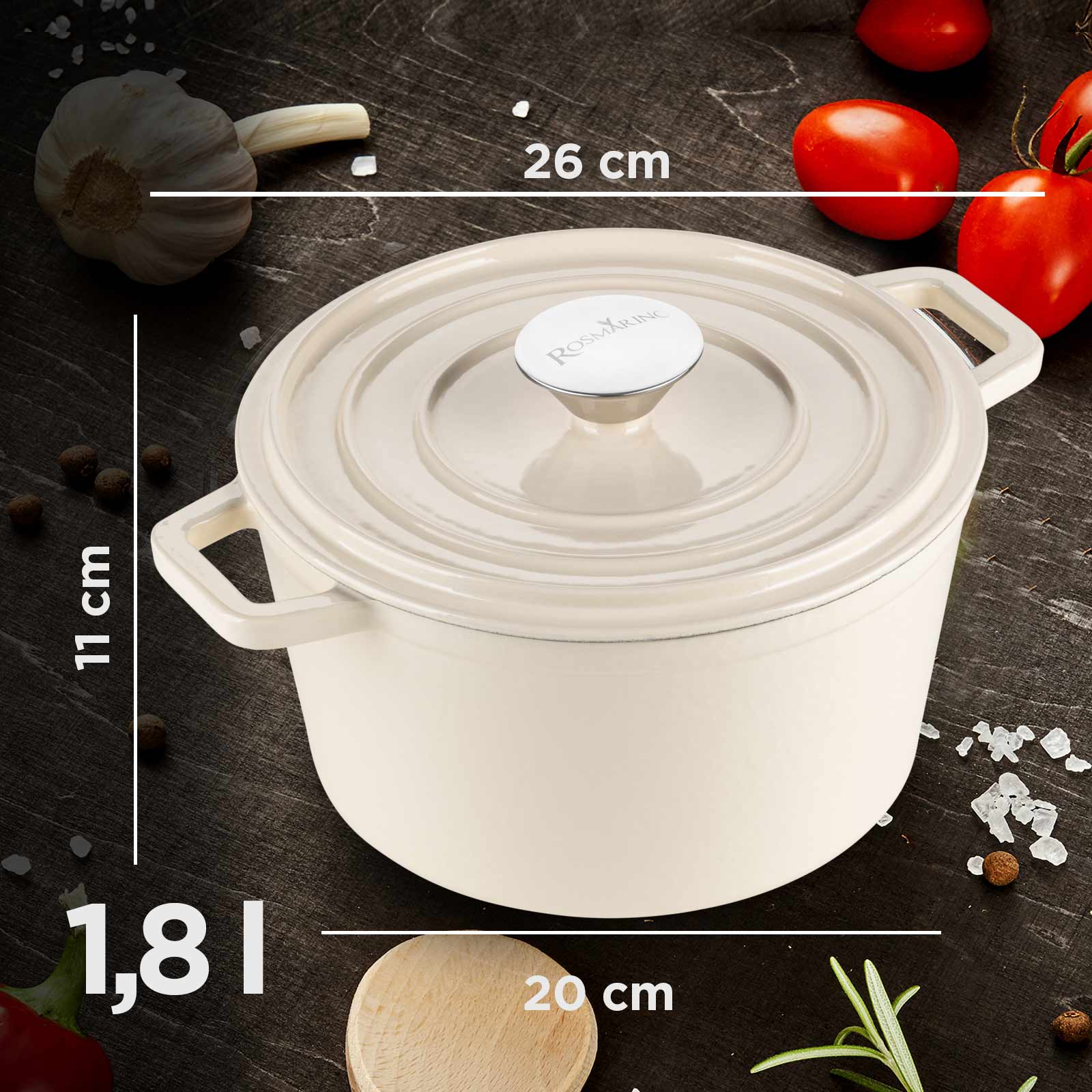- Das Kochgeschirr ist extrem langlebig, erhitzt gleichmäßig und kann die Temperatur gleichmäßig halten.