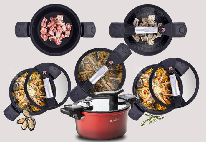 - Das Kochen unter Niederdruck halbiert die Kochzeit und spart bis zu 70% Energie im Vergleich zu herkömmlichen Töpfen.