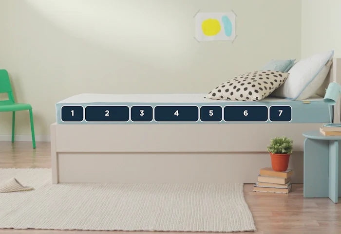 - 7 anpassungsfähige Stützzonen für die richtige Körperausrichtung während des Schlafs.
