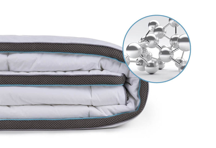 - Silberionen im Bezug hemmen das Wachstum von Bakterien und Milben, wodurch die allergische Belastung im Schlafbereich reduziert wird.