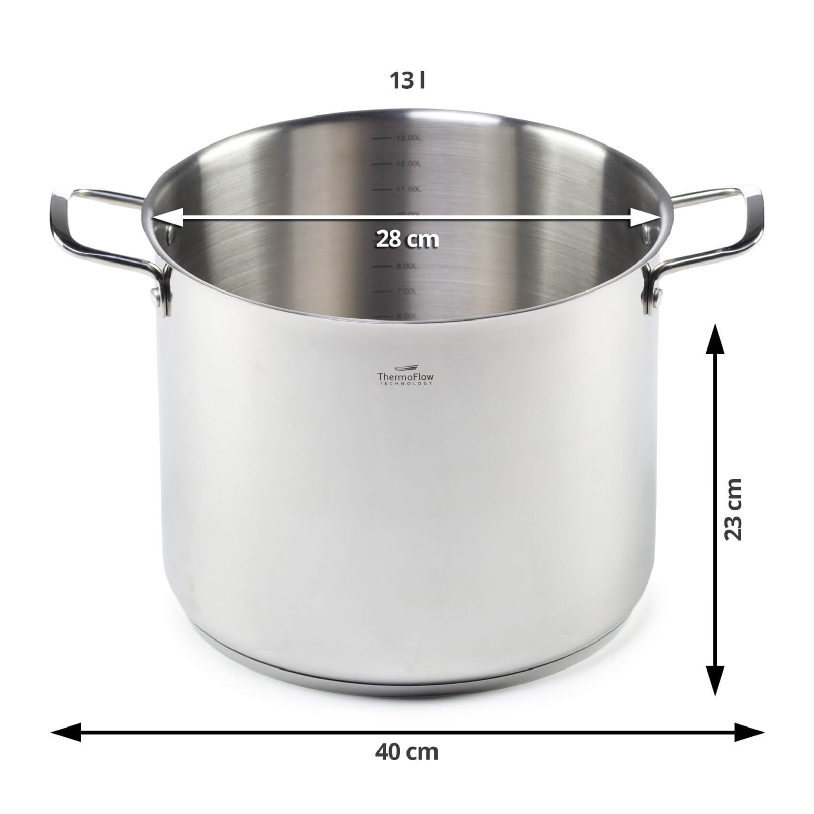 • Topf mit einem Durchmesser von 28 cm aus hochwertigem Edelstahl 18/10.