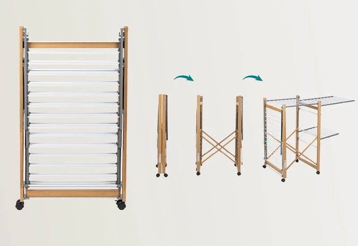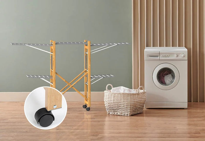 - Dank der integrierten Rollen können Sie den Wäscheständer ganz einfach überall hinfahren! Auch beim Trocknen mit einem Ständer voller Wäsche. Das zusätzliche "Locking Wheel"-System macht den Trockner noch stabiler.