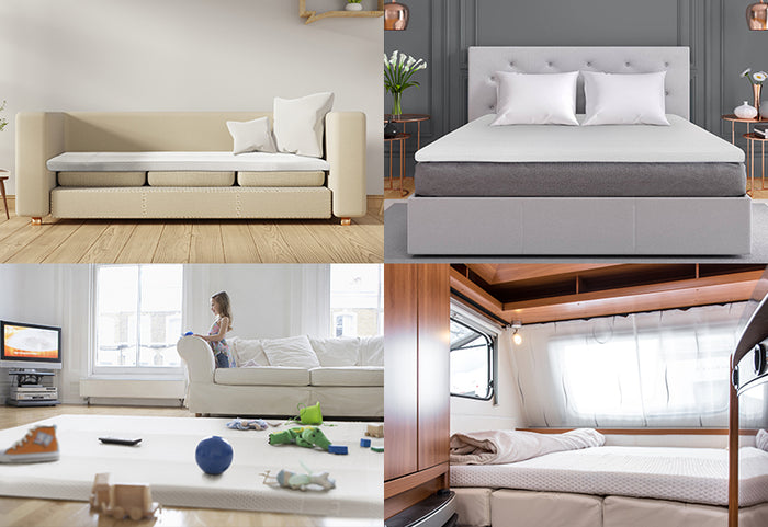 - Der Matratzentopper kann auch als zusätzliche Matratze zu Hause, beim Camping oder auf Reisen verwendet werden, er kann als Turnmatte oder als Spielmatte genutzt werden.