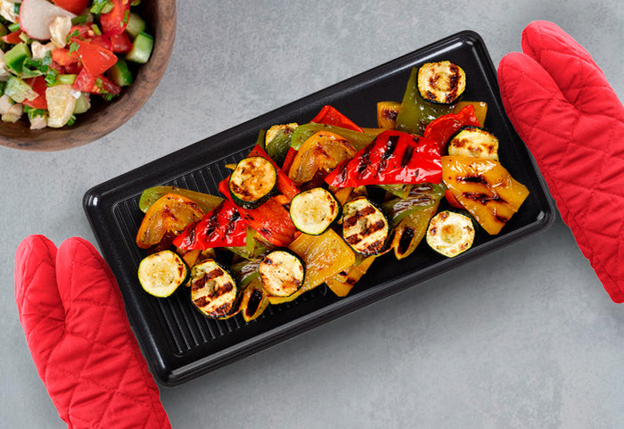 - Die gerippte Oberfläche sorgt für perfekte Grillstreifen und ein echtes BBQ-Erlebnis.