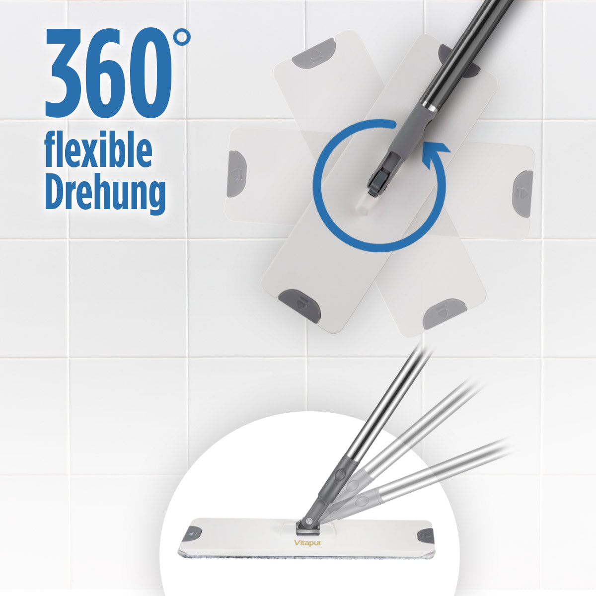 - 360° schwenkbarer Moppkopf ermöglicht eine präzise und gründliche Reinigung.