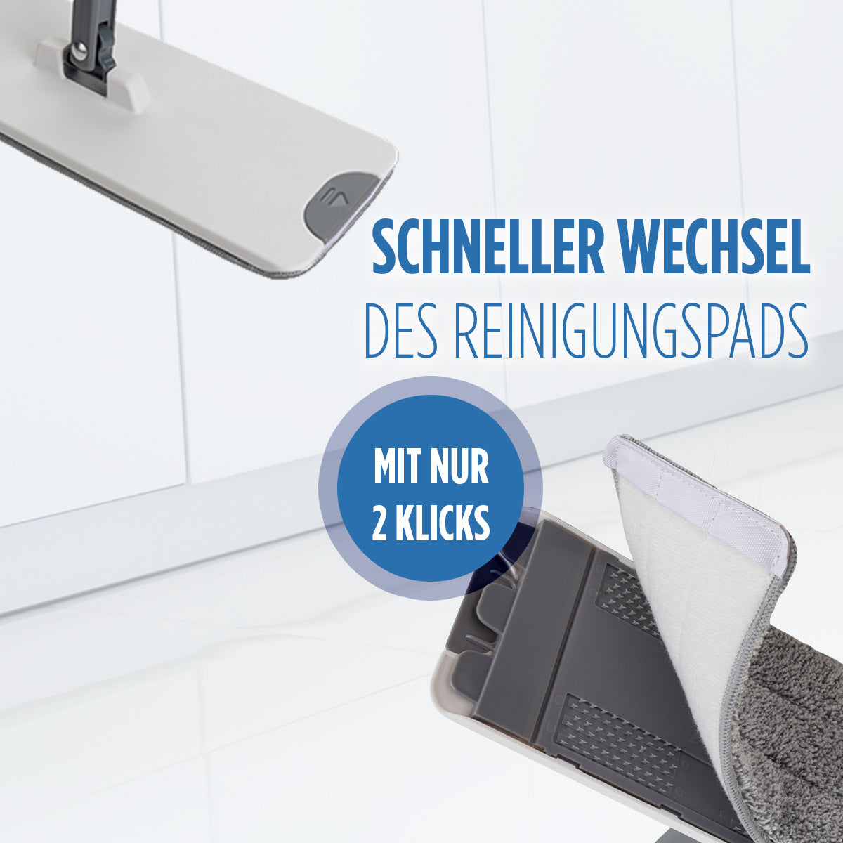 - Schnelles Wechseln der Bodenreinigungspads mit nur 2 Klicks.