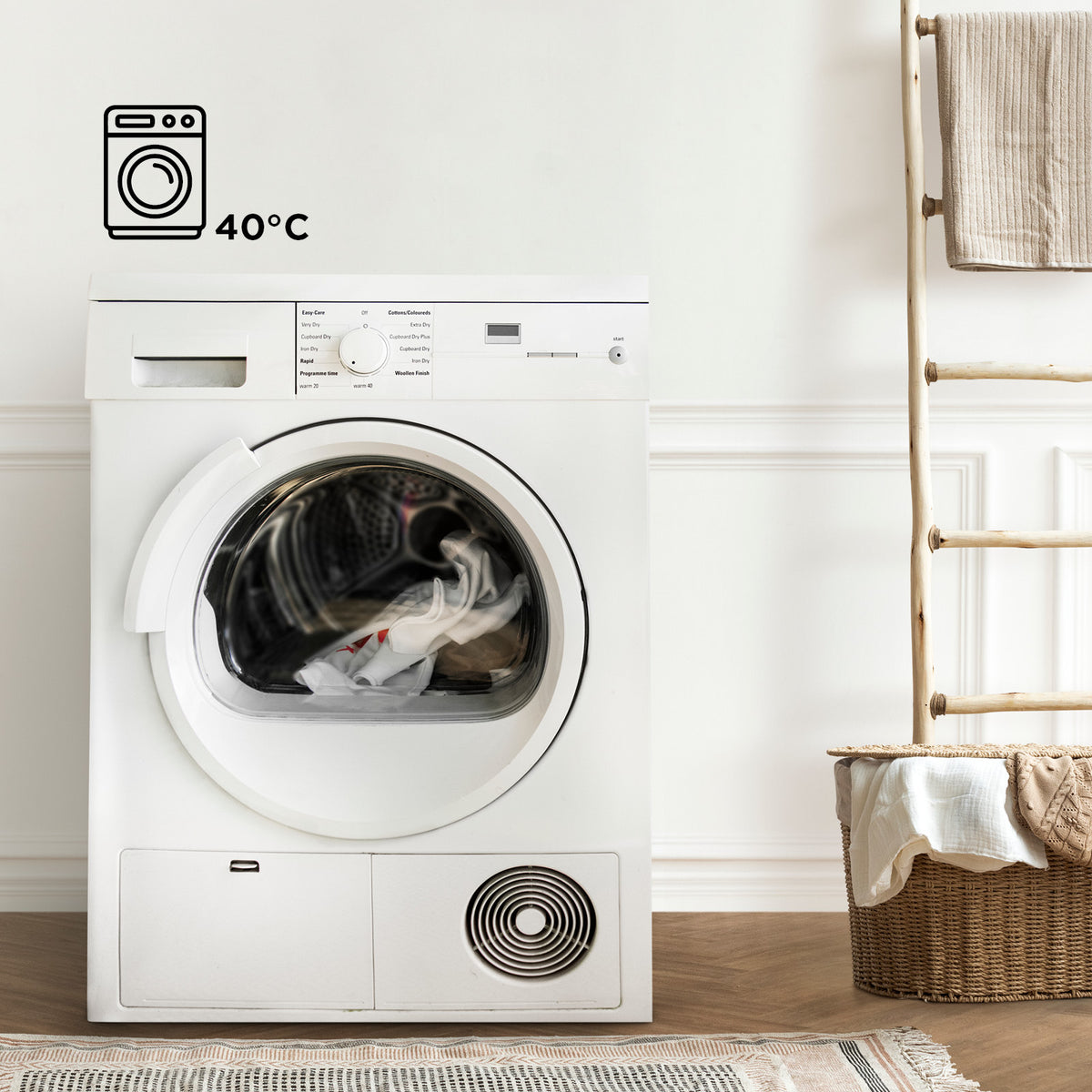 - Leicht zu reinigen in der Waschmaschine bei 40 °C.