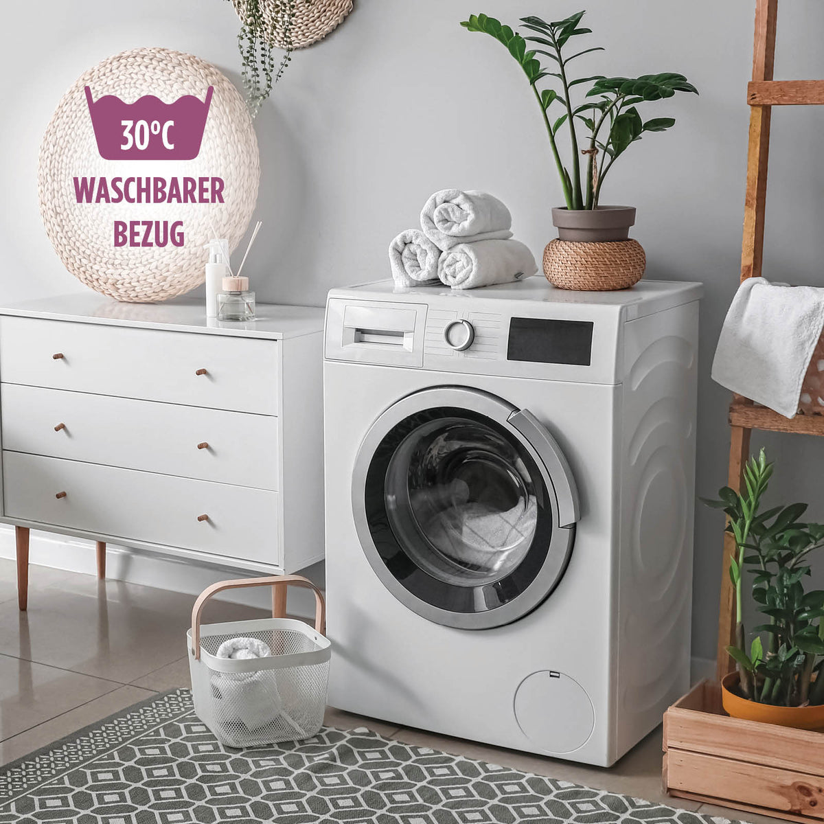 - Der abnehmbare Bezug ist bei 30 °C waschbar und damit auch für Menschen mit empfindlicher und problematischer Haut, Allergiker und Asthmatiker geeignet.