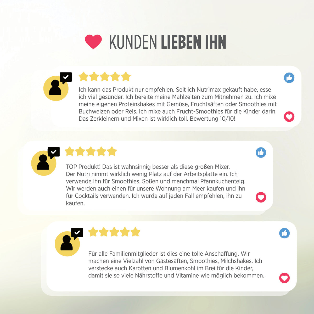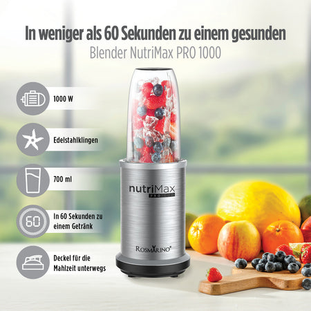 - In weniger als 60 Sekunden produziert der NutriMax Pro Mixer einen gesunden und cremigen Smoothie voller Nährstoffe und Vitamine.