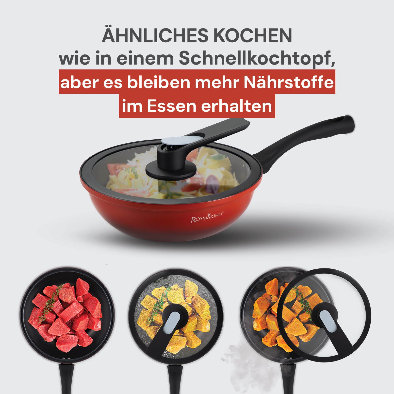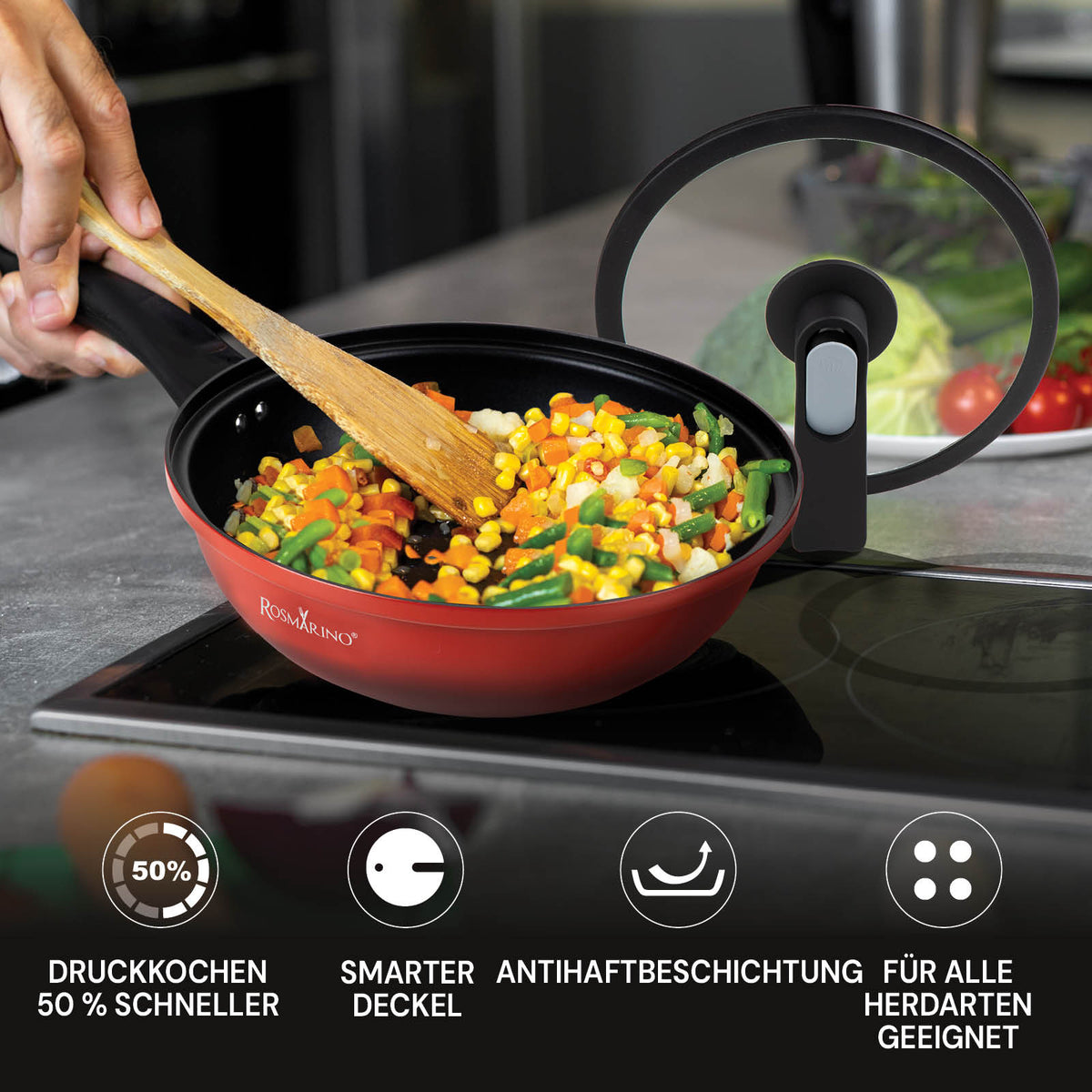 Niederdruck-Wok mit Smart-Deckel Rosmarino Fresh Cooker – 28 cm
