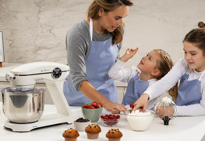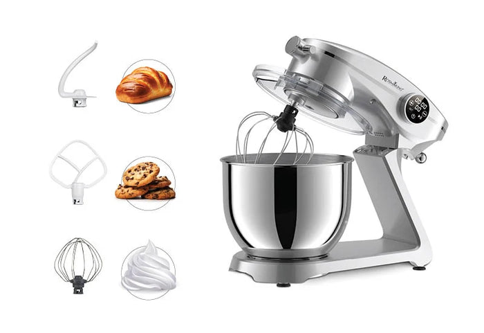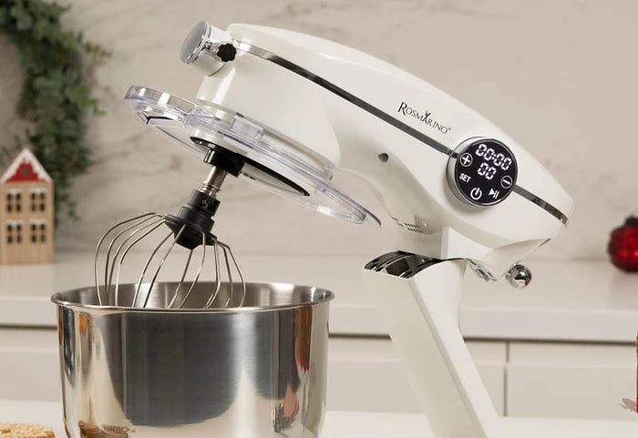 - Die großzügige 6-Liter-Schüssel und drei verschiedene Aufsätze ermöglichen eine vielseitige Nutzung – vom Kneten von Teig bis zum Schlagen von Eiweiß.