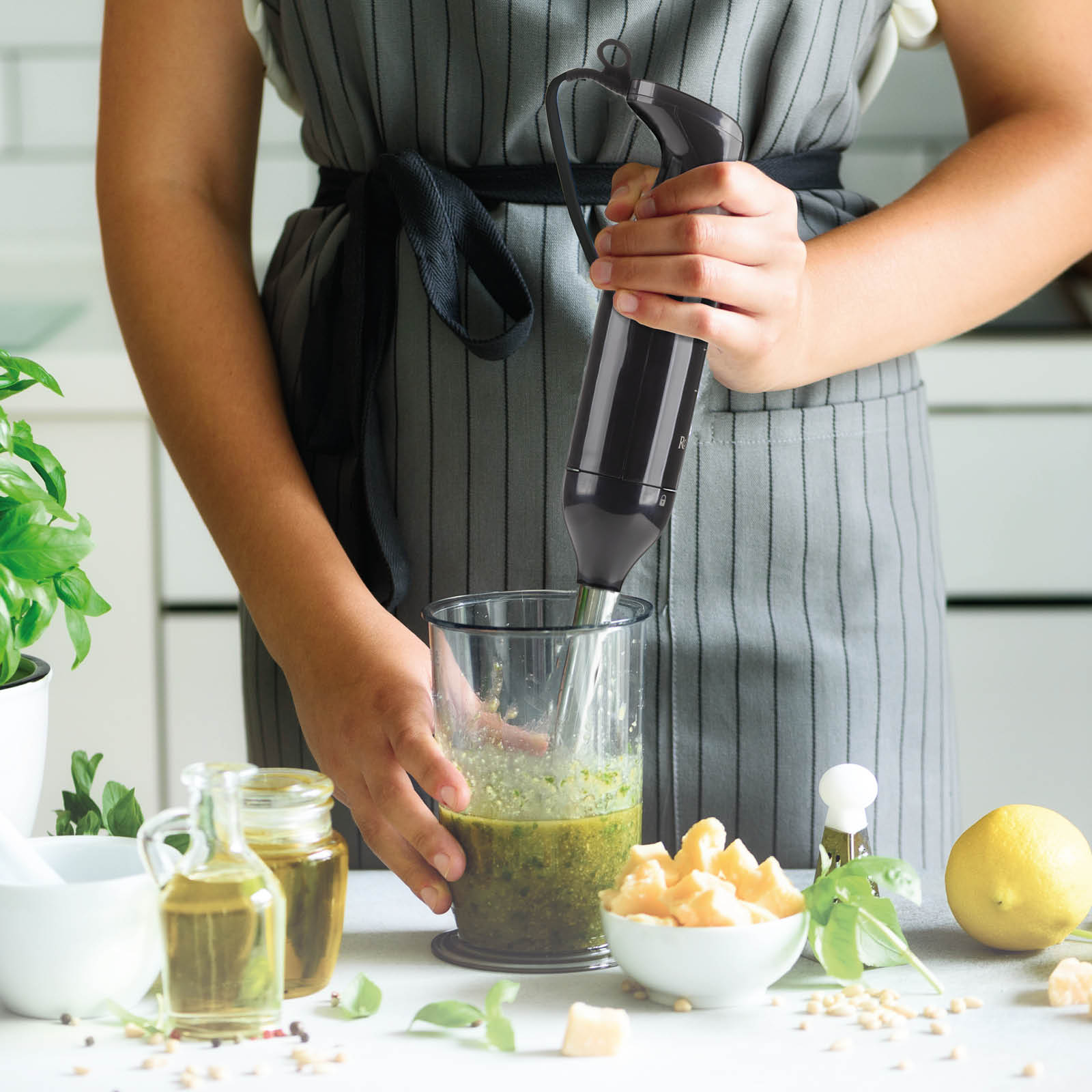 Der Rosmarino Vitalia Stabmixer ist ein unverzichtbares Hilfsmittel für das mühelose Mischen und Pürieren einer Vielzahl von Zutaten in der Küche. Mit einem einfachen Klick erzielen Sie die perfekte Konsistenz von Suppen, Saucen und anderen Zutaten. Auch geeignet zur Zubereitung von Kindergerichten. Das ergonomische Design des Mixers und sein ästhetisches Erscheinungsbild überzeugen alle Liebhaber von Kochkunst und Ästhetik.
