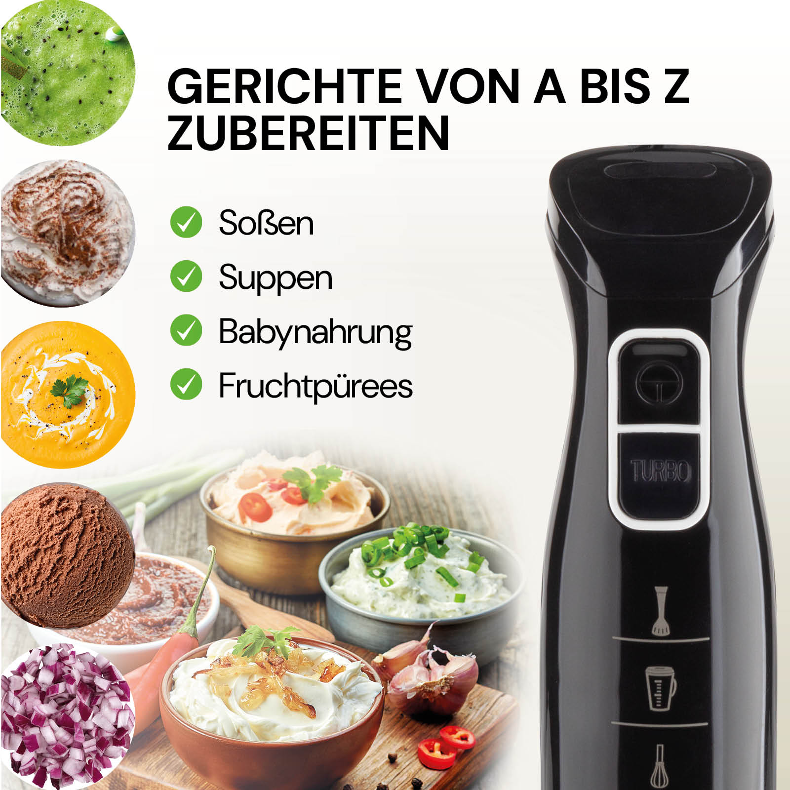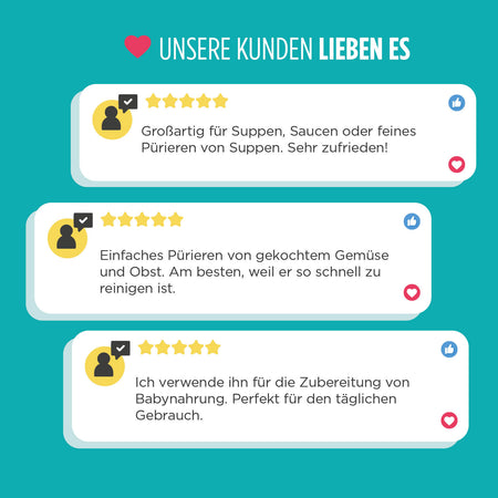- Perfekt zum Zubereiten von Saucen, Suppen, Baby- oder Fruchtpürees.