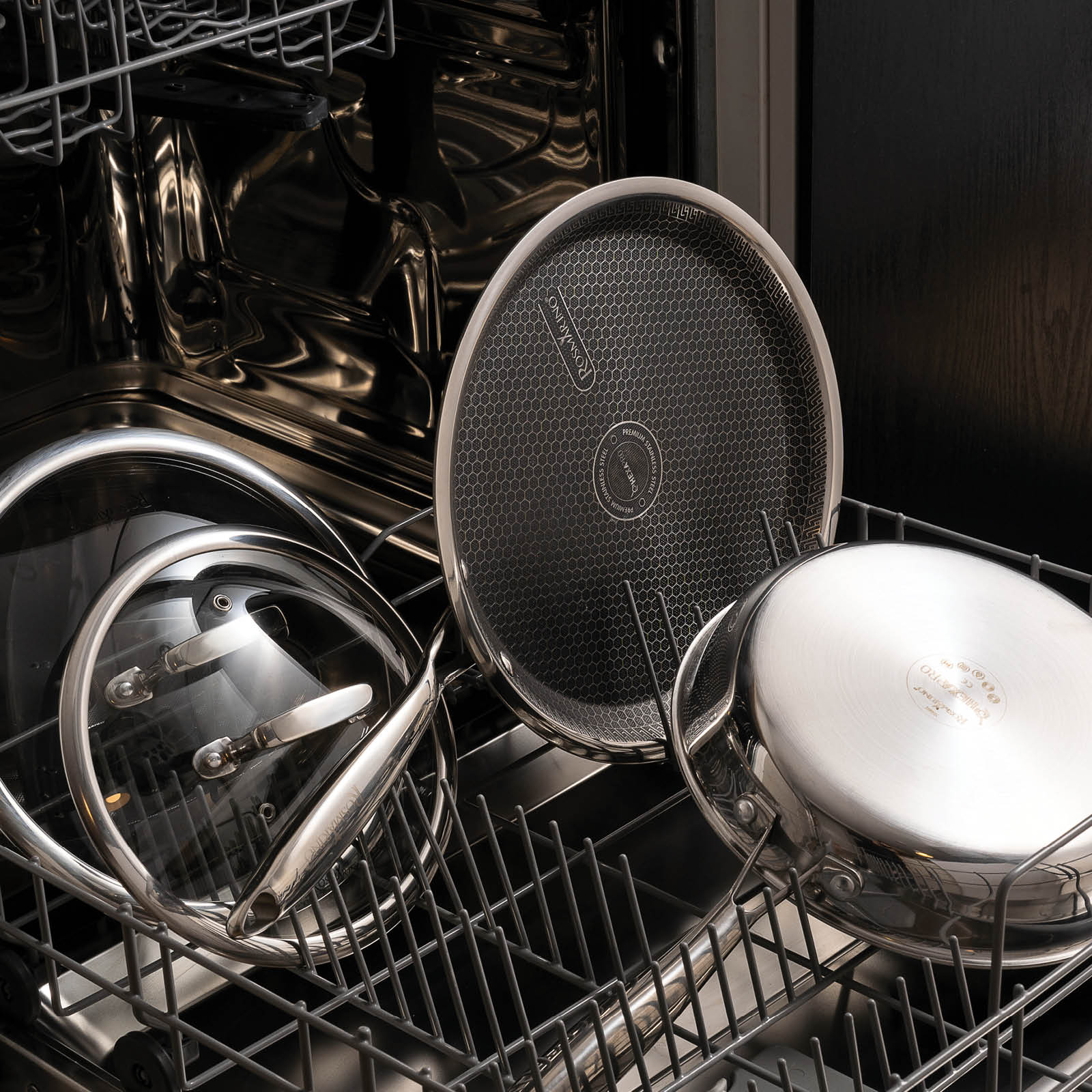 Rosmarino HexaPro ist die ideale Wahl für alle, die Ergebnisse auf Restaurantniveau bequem in ihrer eigenen Küche erzielen möchten. Dank seiner außergewöhnlichen Haltbarkeit, Kratzfestigkeit und der fortschrittlichen HexaPro-Technologie ermöglicht es Ihnen die Zubereitung von erstklassigen Gerichten. Verwirklichen Sie Ihre kulinarischen Träume und lassen Sie sich von diesem Premium-Kochgeschirr auf eine kompromisslose kulinarische Reise mitnehmen.