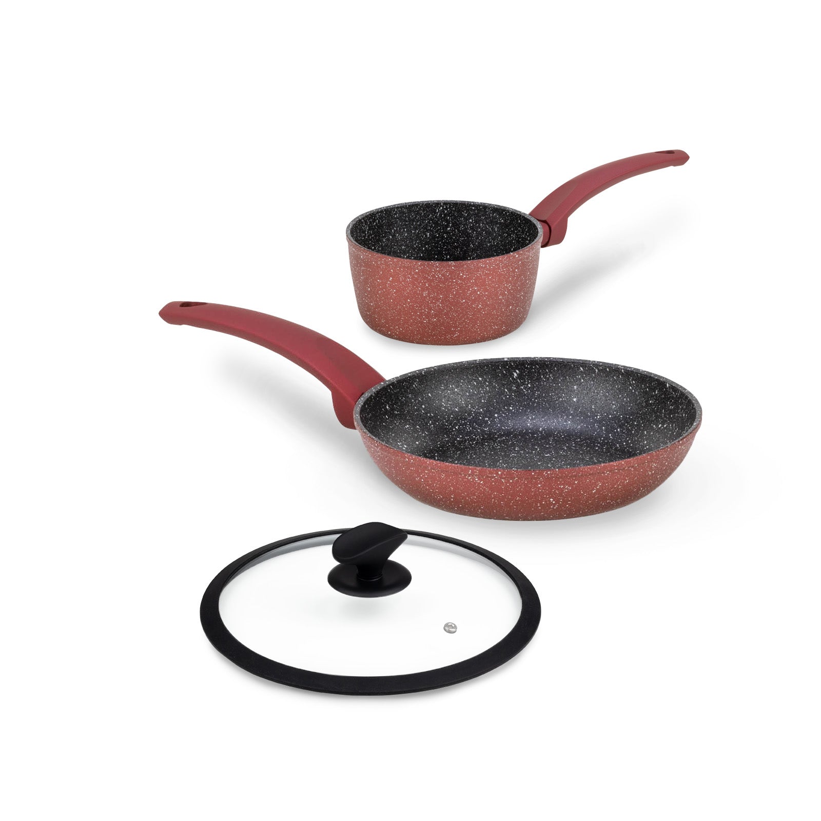 - Set enthält: 1 x Pfanne (24 cm), 1 x Kasserolle (16 cm), 1 x Deckel (24 cm).