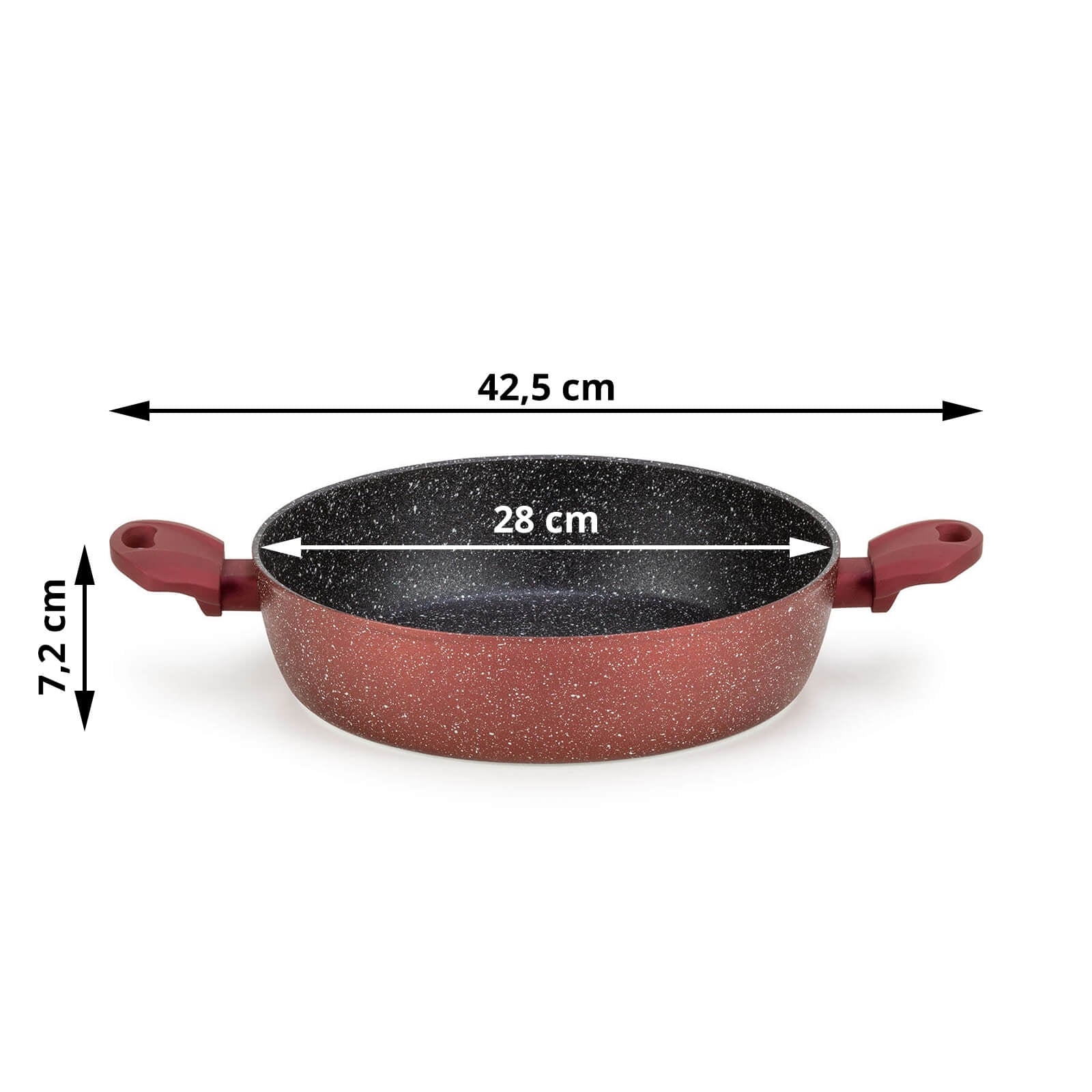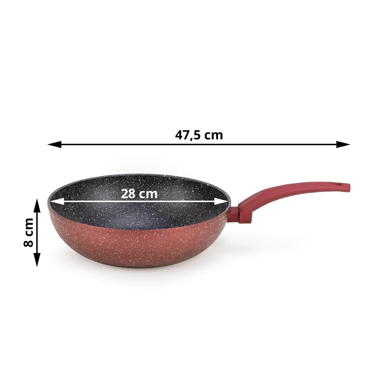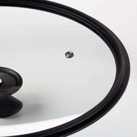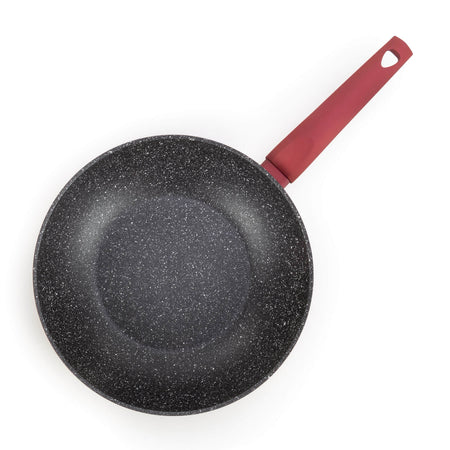 - Set enthält: 1 x Pfanne (28 cm), 1 x Wok (28 cm), 1 x Pfanne mit zwei Griffen (28 cm), 1 x Glasdeckel (28 cm).