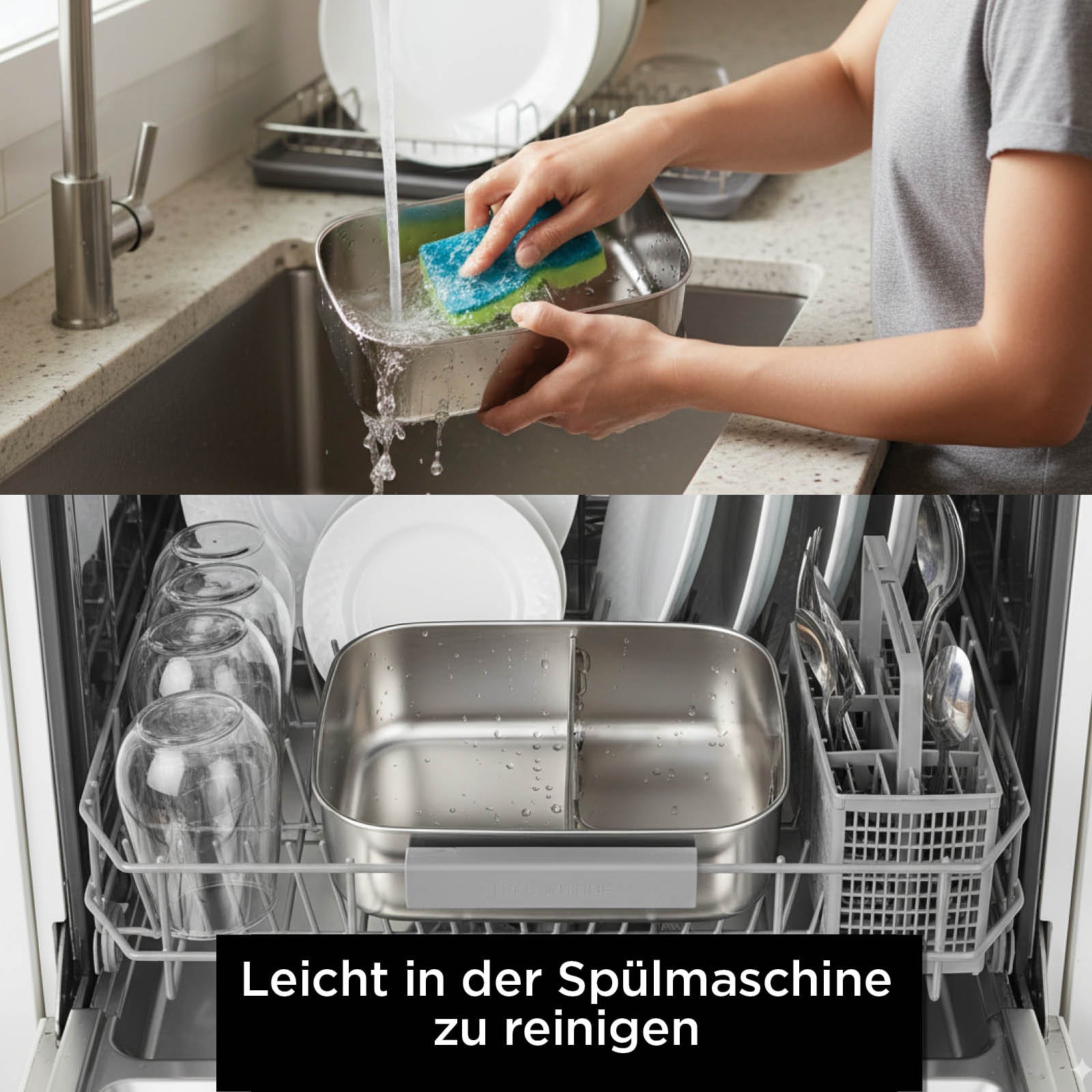 - Morgendliche Ruhe statt Hektik – 2 Fächer trennen Hauptgericht und Beilage.