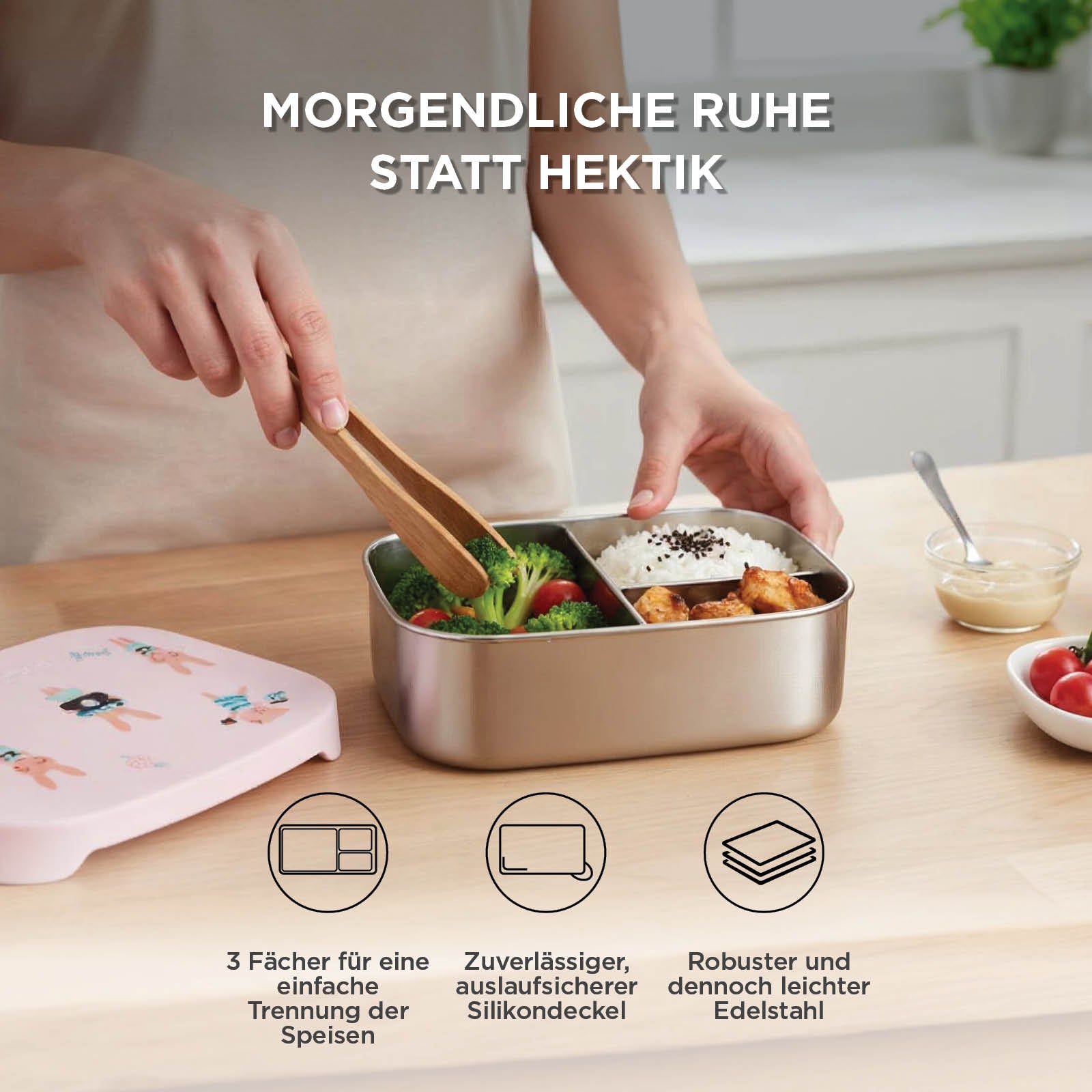 - Morgendliche Ruhe statt Hektik – 3 Fächer trennen Obst, Snacks und die Hauptmahlzeit bereits im Voraus.
