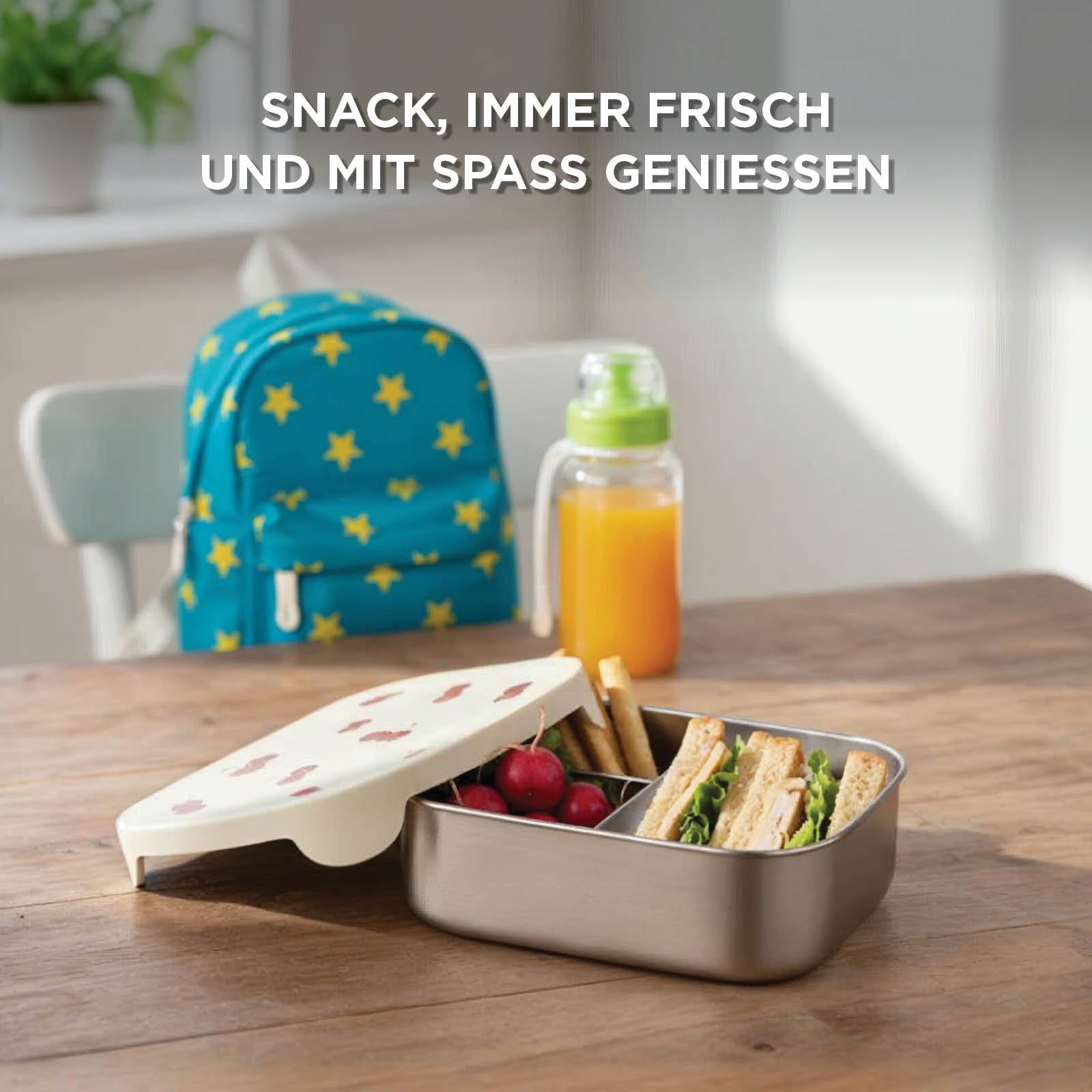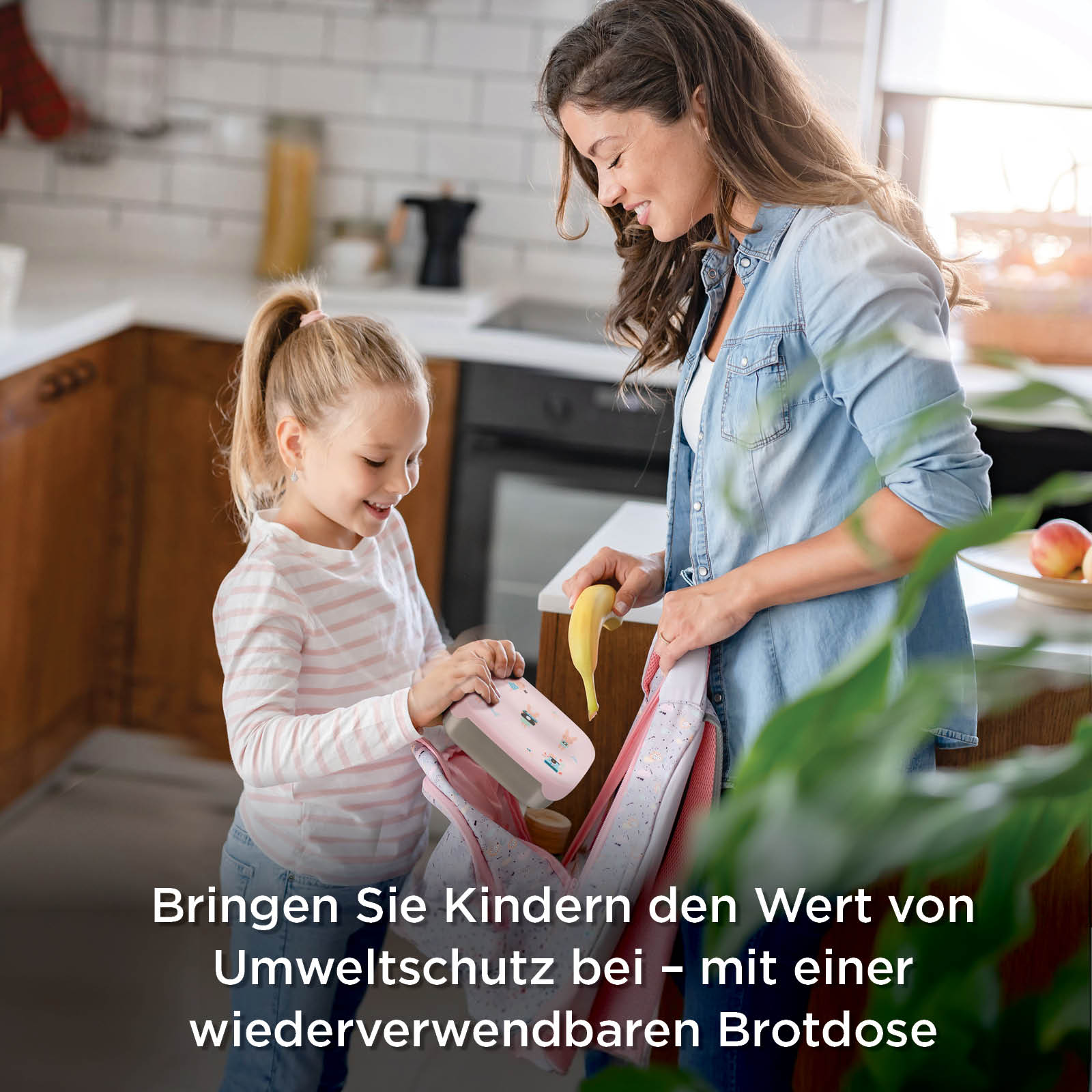 - Keine zerdrückten Sandwiches und verschütteten Joghurts mehr in der Tasche – der Snack Ihres Kindes bleibt frisch und sicher verschlossen in der Box.