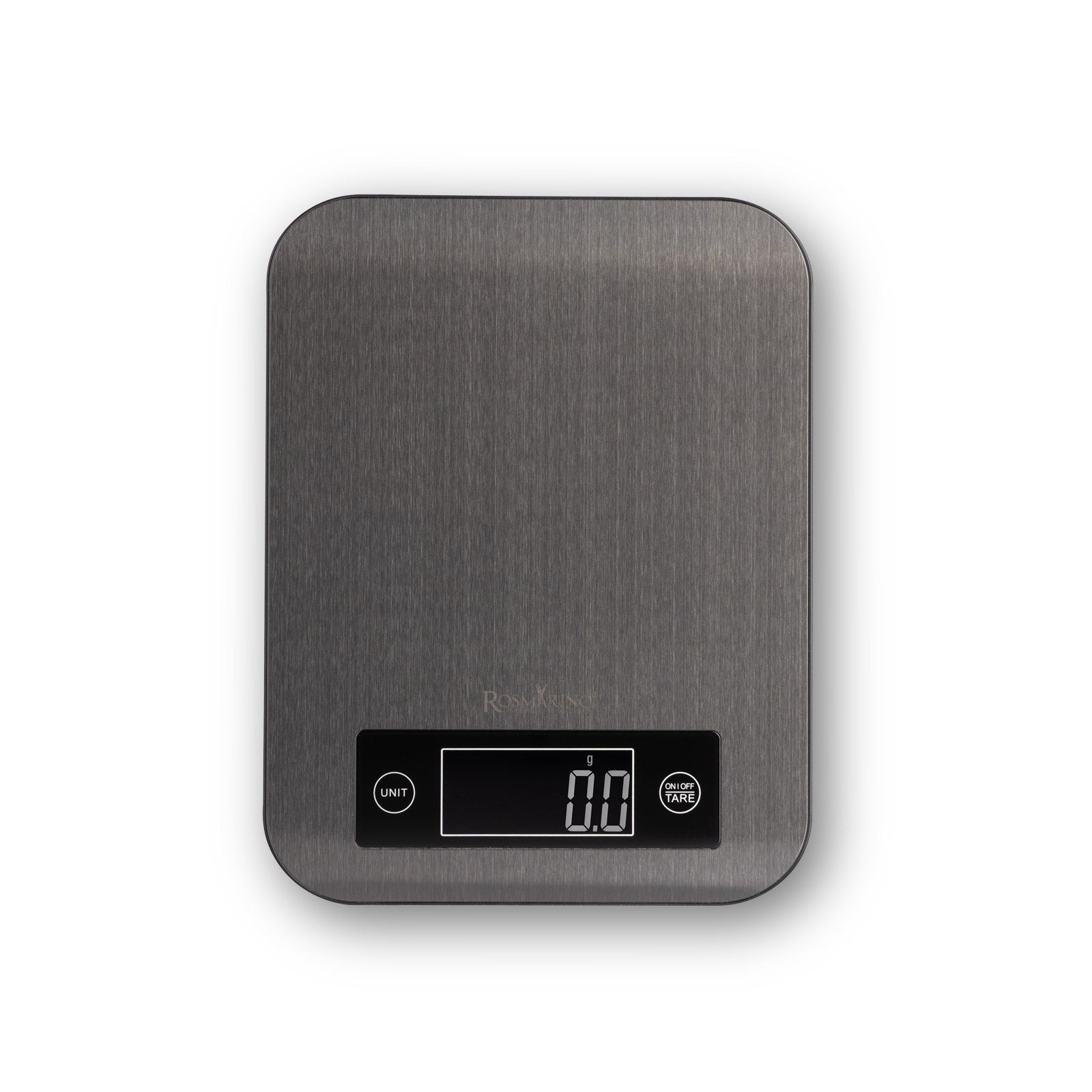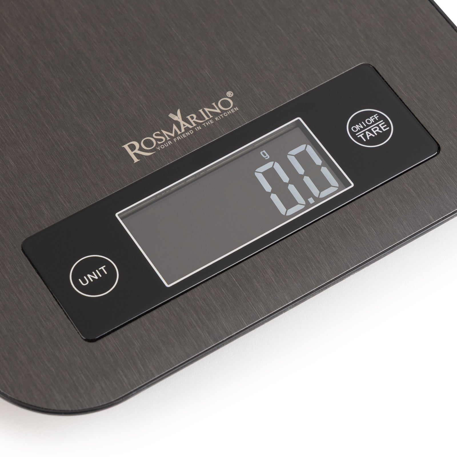 Vergessen Sie das Schätzen und ungenaue Abmessen – die digitale Küchenwaage von Rosmarino bringt professionelle Präzision in Ihre Küche. Mit einer Empfindlichkeit von 0,1 g wiegen Sie zuverlässig alles von Mehl und Zucker bis hin zu Gewürzen und Flüssigkeiten. Dank TARE-Funktion lassen sich mehrere Zutaten bequem in einer Schüssel wiegen – ganz ohne Rechnen. Ideal für Brot, Desserts, Gewürzmischungen oder kalorienbewusste Gerichte. Das elegante schwarze Design mit rutschfesten Füßen sorgt für Stabilität, das beleuchtete LCD-Display für beste Lesbarkeit. Und nach dem Kochen verschwindet die kompakte Waage einfach in der Schublade. Für alle, die mit Leidenschaft kochen – und dabei auf Präzision setzen.