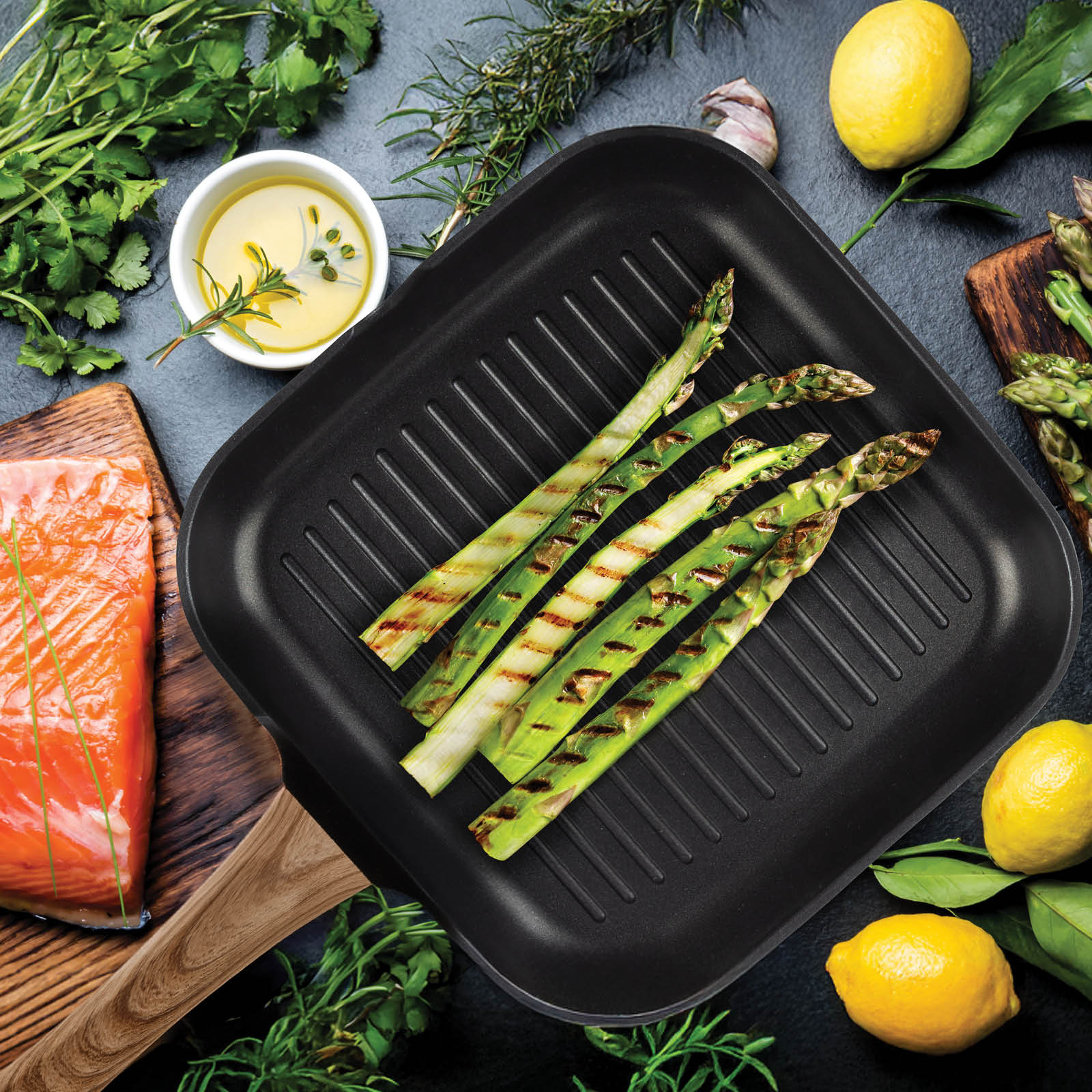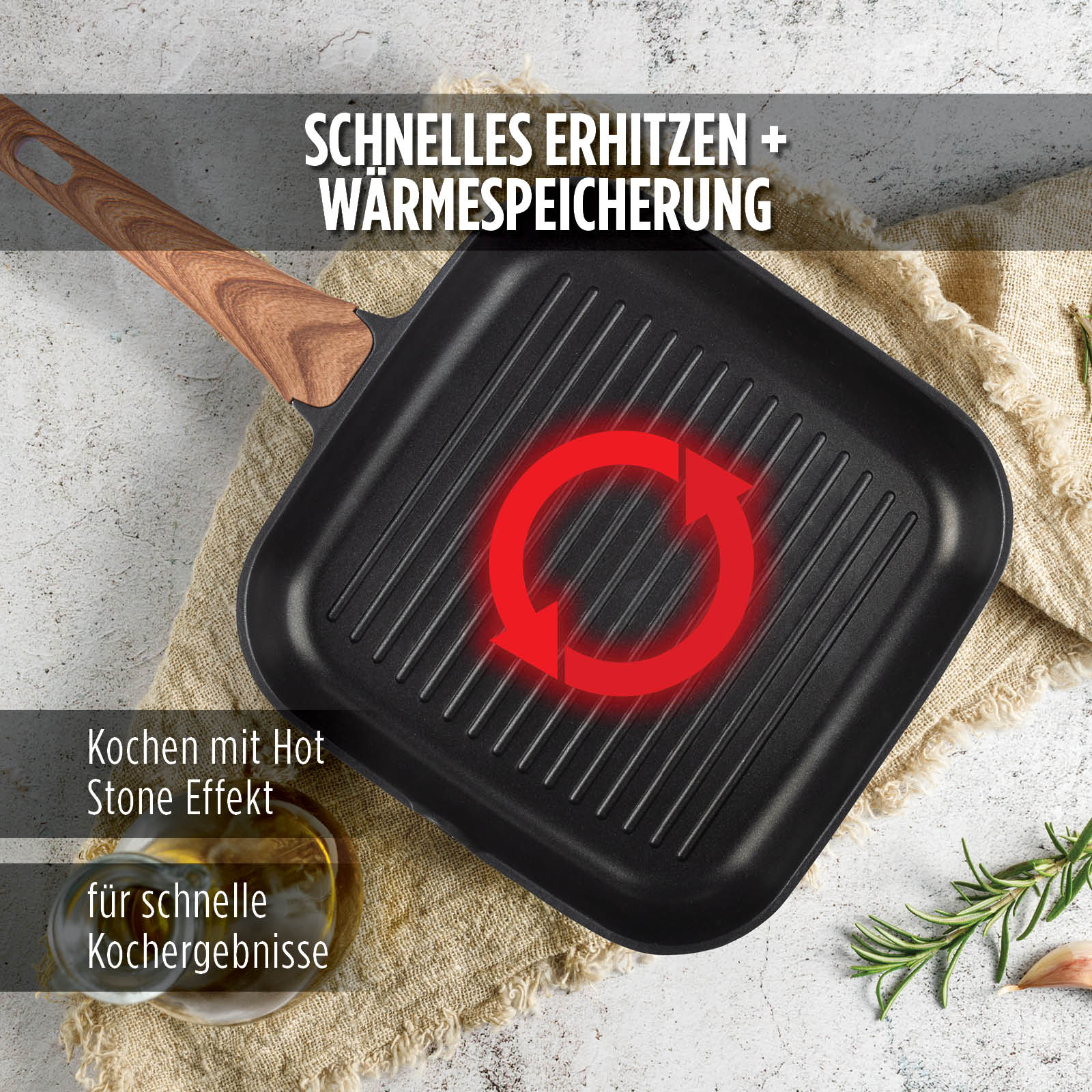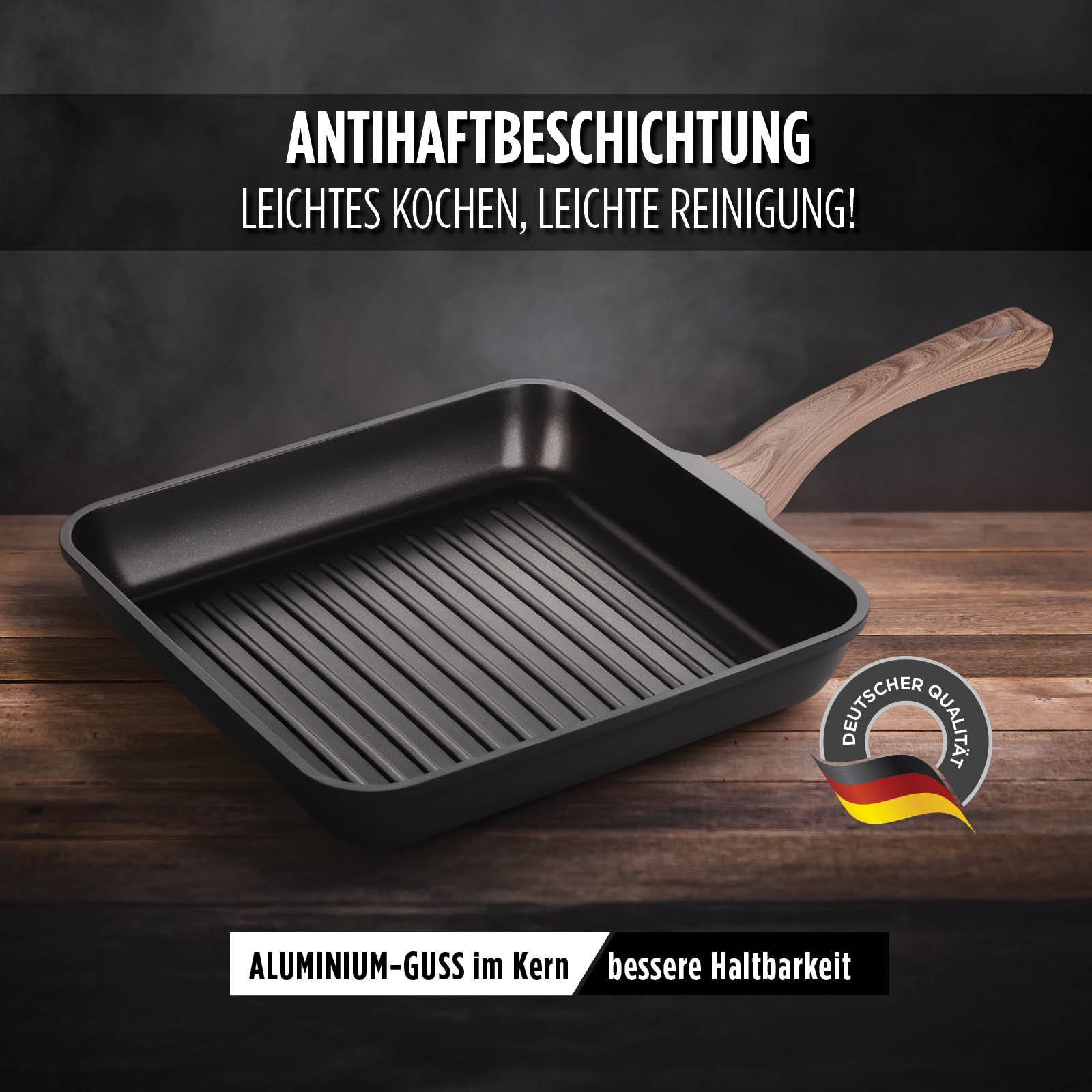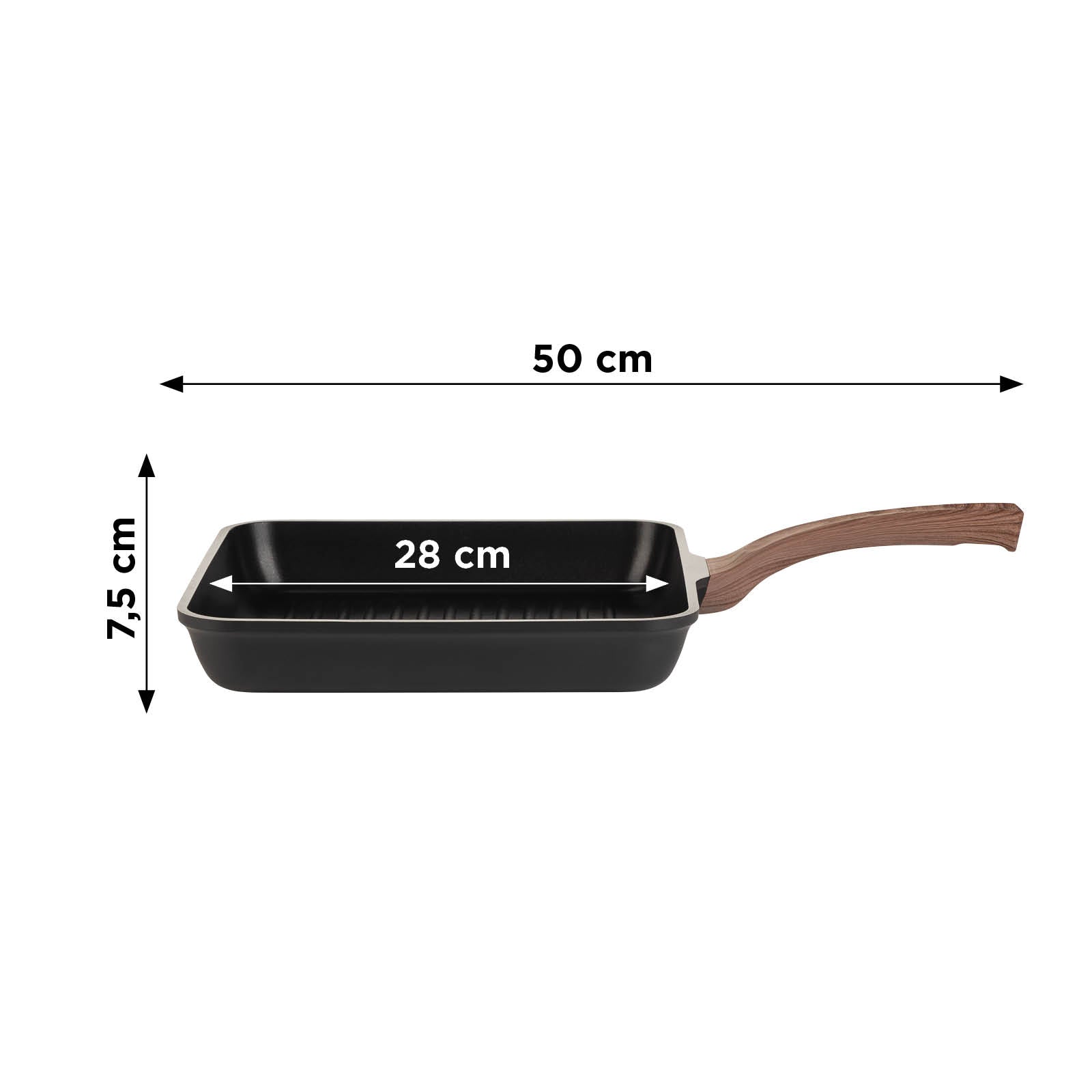• Grillpfanne mit einem Durchmesser von 28 cm aus hochwertigem Aluminiumguss.