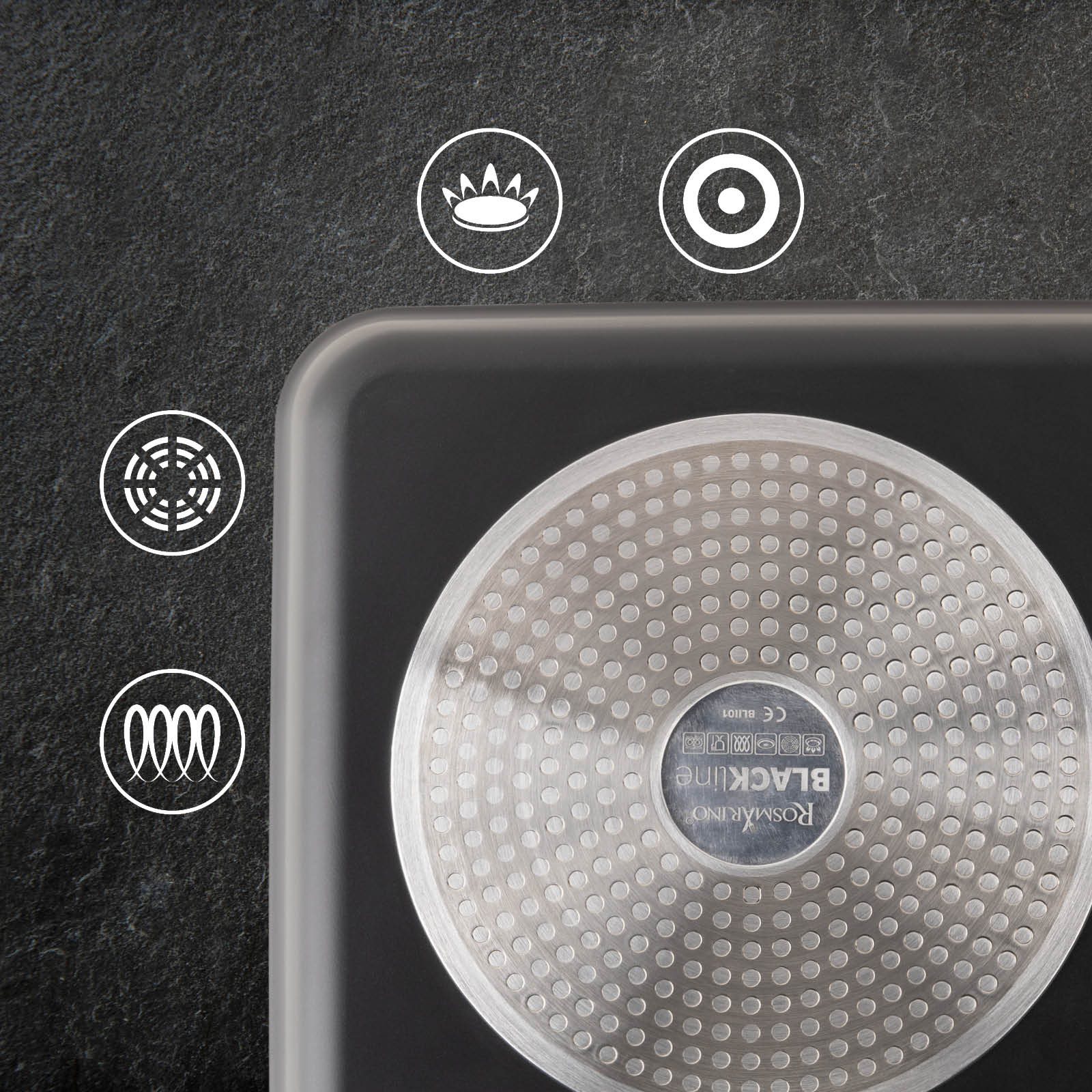 Die Black Line II Grillpfanne mit einem Durchmesser von 28 cm gehört zur Premium-Serie mit einer innovativen und technologisch anspruchsvollen, in Deutschland entwickelten Mineralbeschichtung. Die mineralische Antihaftbeschichtung ermöglicht ein natürliches, fettarmes Kochen und Backen. So bleiben alle Vitamine und Mineralstoffe erhalten, die unser Körper für einen gesunden Lebensstil braucht. Es ist für alle Herdarten einschließlich Induktion geeignet und leicht zu reinigen, da es spülmaschinenfest ist. Das gesamte Black Line II-Kochgeschirr basiert auf einer mehrschichtigen Zusammensetzung, die eine lange Lebensdauer und ein hohes Maß an Widerstandsfähigkeit und Haltbarkeit garantiert.