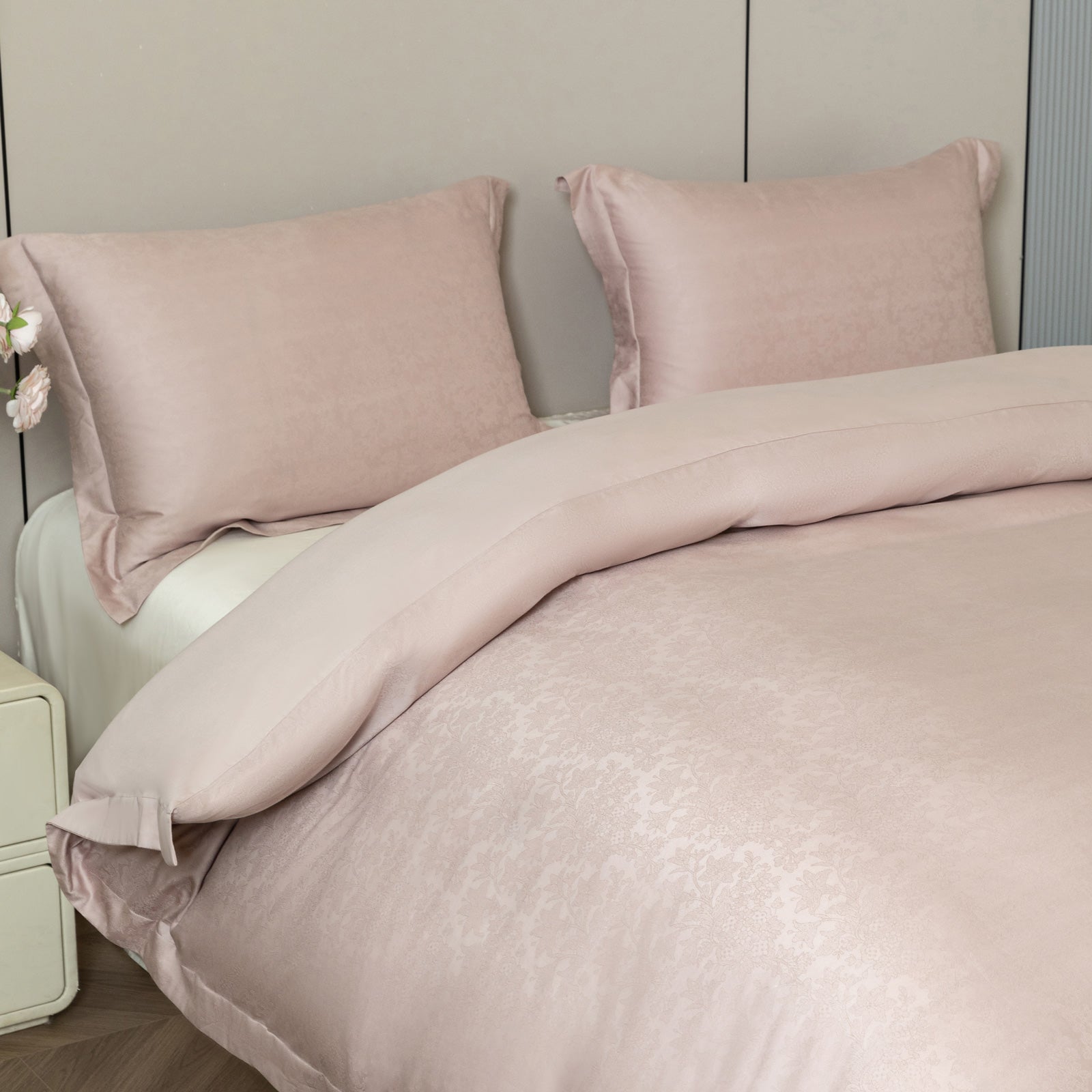 Entdecken Sie die PREMIUM-Satin-Bettwäsche aus 100 % Baumwolle in ägyptischer Qualität. Der glänzende und seidig wirkende Satin begeistert Nacht für Nacht mit seiner Weichheit, während das elegante Jacquard-Gewebe das Erscheinungsbild jedes Schlafzimmers zusätzlich unterstreicht. Lassen Sie Ihren besten Schlaf mit dieser luxuriösen Bettwäsche beginnen.