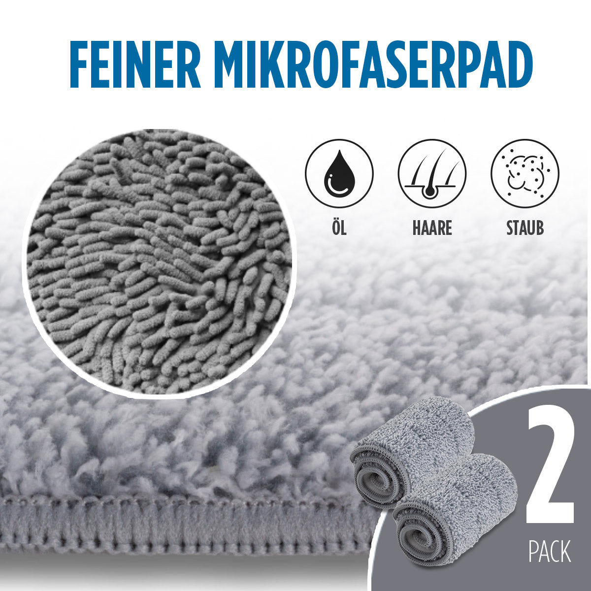 Der Sprühwischer kann für die Nassreinigung verwendet werden. So sind Sie in jeder Ecke Ihres Hauses bestens vorbereitet! Die mitgelieferten feinen Mikrofaserpads fangen Krümel, Tierhaare und andere Schmutzpartikel perfekt auf. Sie können auch fettige Flecken oder angetrockneten Schmutz entfernen. Gleichzeitig können Sie den Bodenreiniger auch zum Trockenstauben des Bodens verwenden.